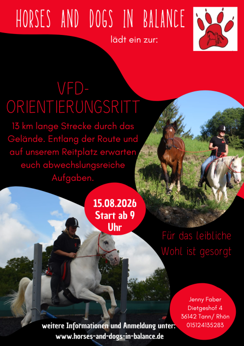 13 km lange Strecke durch das Gelände. Entlang der Route und auf unserem Reitplatz erwarten euch abwechslungsreiche Aufgaben. Für das leibliche Wohl ist gesorgt.